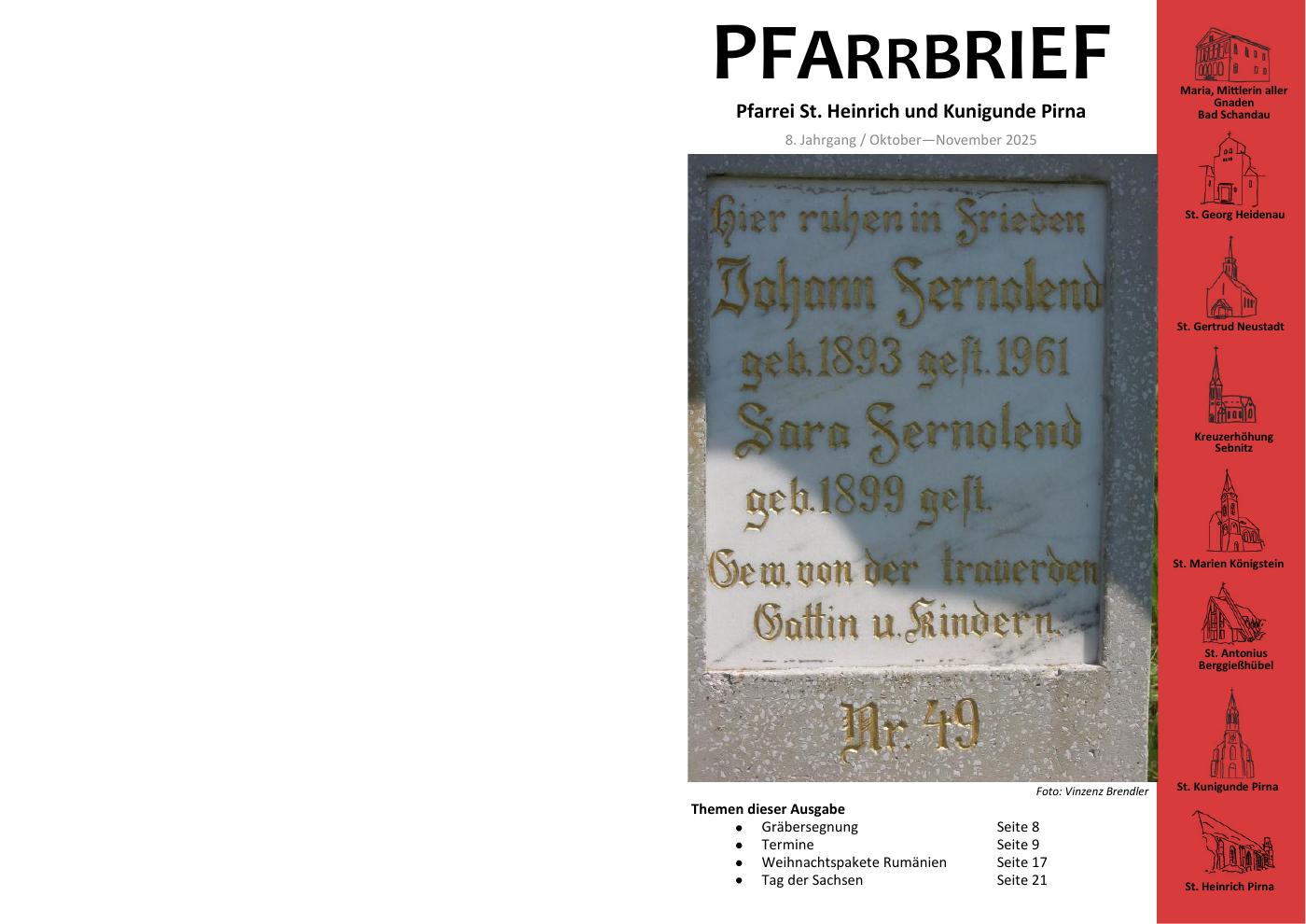 Pfarrbrief Oktober 2025 / November 2025 Veröffentlicht am 30. September 2025 um 23:59 UhrZuletzt bearbeitet am 28. November 2025 um 11:34 Uhr Kategorie: PfarrbriefGemeinde: Gesamtpfarrei Download Pfarrbrief Oktober-November 2025