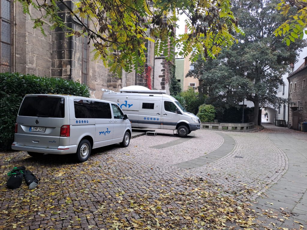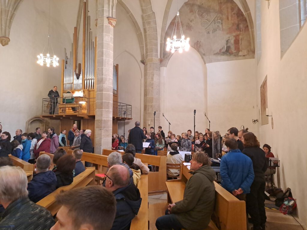 am 12.10.25 war der Mitteldeutsche Rundfunk bei uns in der Klosterkirche zu Gast. Der Bistumskinderchor unter der Leitung von Regionalkantor Stephan Thamm gestaltete diesen mitreißend aus – es wurde die Kleine Latin-Messe von Martin S. Müller gesungen. Über den MDR und den sich zuschaltenden Deutschlandfunk wurde der Gottesdienst deutschlandweit übertragen. In den anschließenden telefonischen Rückmeldungen wurde nicht nur der große Einzugsbereich der begeisterten Radiogottesdienstteilnehmer.innen deutlich – bis in die Schweiz wurden wir gehört – sondern auch deren tiefe Dankbarkeit für das lebendige Glaubenszeugnis in Musik und Liturgie.