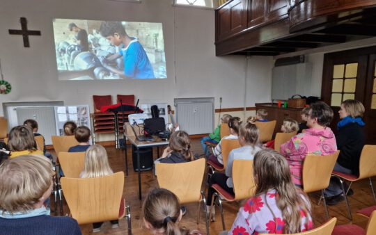 Nach dem köstlichen Mittagessen ging es um die Sternsingeraktion 2026. Das Thema lautet diesmal: „Schule statt Fabrik – Sternsingen gegen Kinderarbeit“. Wir schauten einen Film von Willi Weitzel über die Kinder in Bangladesch, die mit den Spenden unterstützt werden sollen. Zum Abschluss sangen wir viele Sternsingerlieder.